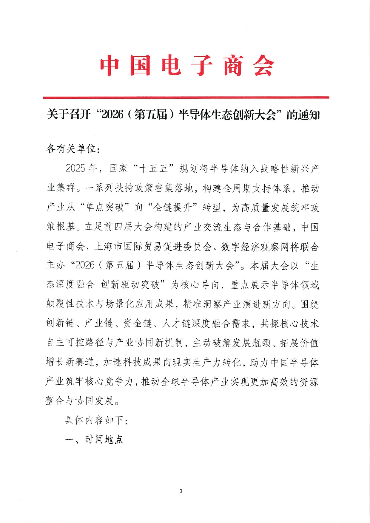 关于召开“2026(第五届)半导体生态创新大会”的通知